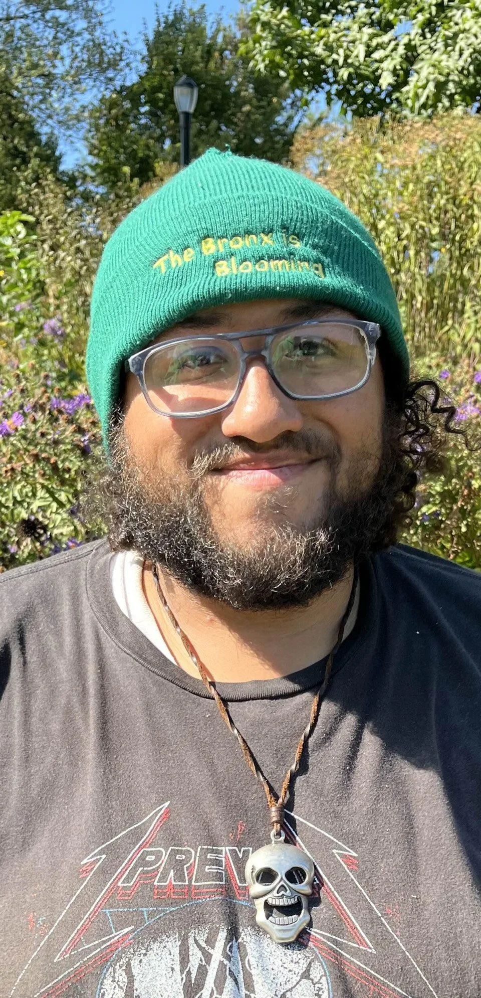 Jamie started in the summer of 2023 as a PLACE student working to help the trees of Crotona Park, then returned for the BRIDGE program for the fall and following spring, and is now one of the Environmental Program Assistants! Born and raised in the Bronx, Jamie has decided to dedicate his time, energy, and love to aiding his communities in forming deep and meaningful connections with the place we all call home. They spend their time with us tending to our garden beds across the borough, and helping inspire likeminded volunteers to see the Bronx through a different lens. Their goal is to help people see the Bronx the way they do, as a beautiful place with a rich history that we should all play our part in helping thrive. When they're not helping the Bronx bloom, you can find them writing, drawing, or some combination of both while they plan the next BiB staff D&D game.